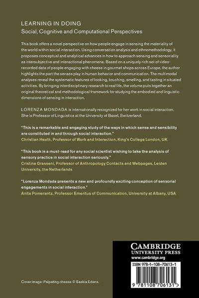 Part I. Sensoriality in Interaction: 1. From the senses to sensing in interaction 2. Methodology Part II. Looking and Knowing: 3. Looking for a cheese 4. Asking for a cheese: the calibration of looking and knowing Part III. Sensing Together: 5. Touching: professional and lay touch 6. Smelling: professional and lay smell Part IV. Tasting, Assessing and Making decisions: 7. Requests and offers to taste: the sequential environment of tasting 8. The anatomy of tasting 9. The outcome of tasting: assessing and decision-making 10. Conclusion.