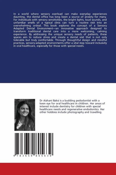 In a world where sensory overload can make everyday experiences daunting, the dental office has long been a source of anxiety for many. For individuals with sensory sensitivities, the bright lights, loud sounds, and unfamiliar smells of a typical clinic can turn a routine visit into an overwhelming ordeal. This book explores the concept of a Sensory Adapted Dental Environment-an innovative approach designed to transform traditional dental care into a more welcoming, calming experience. By addressing the unique sensory needs of patients, these spaces aim to reduce stress and create a dental visit that is not only tolerable but truly comfortable. Through thoughtful design and mindful practices, sensory-adapted environments offer a vital step toward inclusivity in oral healthcare, especially for those with special needs.