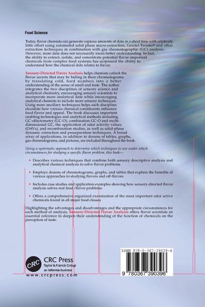 Sensory-Directed Flavor Analysis helps chemists unlock the flavor secrets that may be hiding in their chromatograms by translating cold numbers into a better understanding of smell and taste. Using more ancillary techniques helps sensory scientists and analytical chemists elucidate how chemical constituents can influence food flavor and appeal. The book discusses important enabling technologies and analytical methods including GC-olfactometry and the application of odor activity values, as well as solid-phase dynamic extraction and pre-separation techniques. The book provides a broad array of applications, in addition to dozens of tables, graphs, gas chromatograms, and pictures throughout.