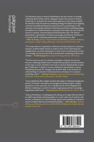 "Sensory Marketing is a challenging book setting out to argue that the field of so-called experiential marketing applies to a much wider set of products and services. In doing this it is well and clearly argued and assembles an impressive array of scholarly references and practical examples." - Robin Wensley, Professor of Policy and Marketing, Director of ESRC/EPSRC AIM Research Initiative, Warwick Business School, UK