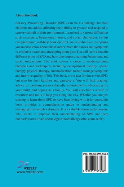 Sensory Processing Disorder (SPD) can be a challenge for both children and adults, affecting their ability to process and respond to sensory stimuli in their environment. It can lead to various difficulties such as anxiety, behavioural issues, and social challenges. In this comprehensive self-help book on SPD, you will discover everything you need to know about this disorder, from the causes and symptoms to available treatments and coping strategies. You will learn about the different types of SPD and how they impact learning, behaviour, and social interactions. The book covers a range of evidence-based therapies and techniques, including occupational therapy, speech therapy, physical therapy, and medication, to help manage symptoms and improve quality of life. This book is not just for those with SPD, but also for their families and caregivers. You will find practical advice on creating sensory-friendly environments, advocating for your child, and coping as a family. You will also find a wealth of resources and tools to help you along the way. Whether you are just starting to learn about SPD or have been living with it for years, this book provides a comprehensive guide to understanding and managing this complex disorder. It is a valuable resource for anyone who wants to improve their understanding of SPD and help themselves or a loved one navigate the challenges that come with it.