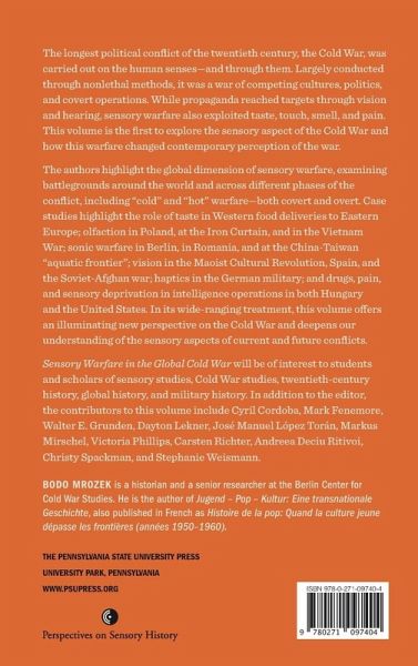 The longest political conflict of the twentieth century, the Cold War, was carried out on the human senses-and through them. Largely conducted through nonlethal methods, it was a war of competing cultures, politics, and covert operations. While propaganda reached targets through vision and hearing, sensory warfare also exploited taste, touch, smell, and pain. This volume is the first to explore the sensory aspect of the Cold War and how this warfare changed contemporary perception of the war. The authors highlight the global dimension of sensory warfare, examining battlegrounds around the world and across different phases of the conflict, including "cold" and "hot" warfare-both covert and overt. Case studies highlight the role of taste in Western food deliveries to Eastern Europe; olfaction in Poland, at the Iron Curtain, and in the Vietnam War; sonic warfare in Berlin, in Romania, and at the China-Taiwan "aquatic frontier"; vision in the Maoist Cultural Revolution, Spain, and the Soviet-Afghan war; haptics in the German military; and drugs, pain, and sensory deprivation in intelligence operations in both Hungary and the United States. In its wide-ranging treatment, this volume offers an illuminating new perspective on the Cold War and deepens our understanding of the sensory aspects of current and future conflicts. Sensory Warfare in the Global Cold War will be of interest to students and scholars of sensory studies, Cold War studies, twentieth-century history, and military history. In addition to the editor, the contributors to this volume include Cyril Cordoba, Mark Fenemore, Walter E. Grunden, Dayton Lekner, José Manuel López Torán, Markus Mirschel, Victoria Phillips, Carsten Richter, Andreea Deciu Ritivoi, Christy Spackman, and Stephanie Weismann.