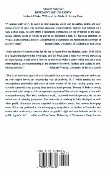 Sentiment and Celebrity tells the story of a man the New York Times once called "the most talked-about author in America". A widely admired, if controversial master of the sentimental appeal poet and "magazinist" Nathaniel Parker Willis (1806-1867) was a pioneer in the modern business of celebrity. By charting the shape and thrust of the various controversies that surrounded Willis, this book shows how the cultural and commercial impulses that fostered the development of antebellum America's love affair with fame and fashion drew power and sustenance from the concurrent allure of genteel cultivation and sentiment.