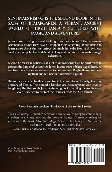 Sentinals Rising is the second book in the saga of Remargaren, a vibrant, ancient world of high fantasy suffused with magic and adventure. Jerrol Haven, having rescued the king from the clutches of the malevolent Ascendants, knows they haven't stopped their scheming. While trying to learn more about the mysterious Sentinals he woke from a three-thousand-year sleep, he has to defend his king and country from further magical attacks.Should he trust the Sentinals in such vital positions? Can he trust them to protect the king and Vespiri? ¿As Jerrol learns more of their capabilities, he realises there are more secrets yet to be revealed. Maybe those questioning their sudden rise in power have a point.Before he can delve further, a call for help comes from the neighbouring country of Terolia. The nomadic Families are disintegrating into chaotic infighting. The king sends Jerrol to investigate, instructing him to do whatever is needed to protect the Families from the Ascendants.
