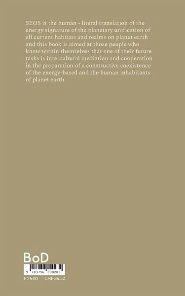 SEOS is the human - literal translation of the energy signature of the planetary unification of all current habitats and realms on planet earth and this book is aimed at those people who know within themselves that one of their future tasks is intercultural mediation and cooperation in the preparation of a constructive coexistence of the energy-based and the human inhabitants of planet earth.