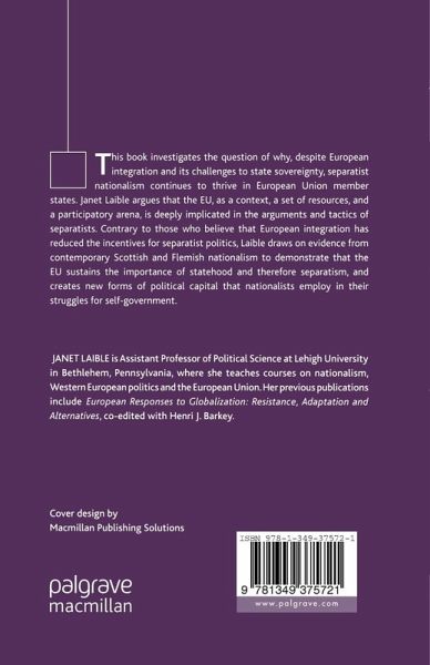 This book investigates why, despite European integration, separatist nationalism continues to thrive in EU member states. Laible demonstrates that the EU sustains the importance of statehood, and therefore separatism, and creates new forms of political capital that nationalists employ in their struggles for self-government.