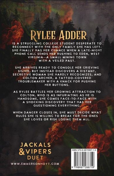 Rylee Adder is a struggling college student desperate to reconnect with the only family she has left. She finally has her chance when a late-night phone call sends her rushing to Eden, West Virginia-a small mining town with a veiled past. She arrives ready to console her grieving sister, but instead discovers a distant, secretive woman she hardly recognizes, and Colton Archer, a tattoo-covered troublemaker with a knack for pushing her buttons. As Rylee battles her growing attraction to Colton, who is as infuriating as he is handsome, she comes face-to-face with a shocking discovery that has her questioning everything. When danger closes in, she must decide what rules she is willing to break for the ones she loves or risk losing them all.