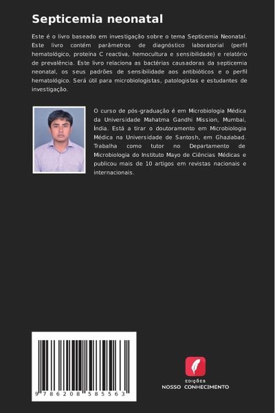Este é o livro baseado em investigação sobre o tema Septicemia Neonatal. Este livro contém parâmetros de diagnóstico laboratorial (perfil hematológico, proteína C reactiva, hemocultura e sensibilidade) e relatório de prevalência. Este livro relaciona as bactérias causadoras da septicemia neonatal, os seus padrões de sensibilidade aos antibióticos e o perfil hematológico. Será útil para microbiologistas, patologistas e estudantes de investigação.