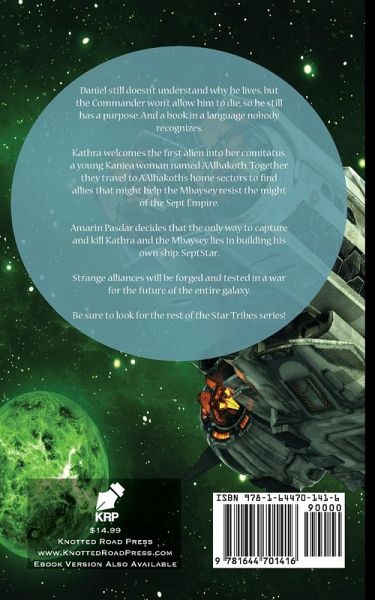 Daniel still doesn't understand why he lives, but the Commander won't allow him to die, so he still has a purpose. And a book in a language nobody recognizes. Kathra welcomes the first alien into her comitatus, a young Kaniea woman named A'Alhakoth. Together they travel to A'Alhakoth's home sectors to find allies that might help the Mbaysey resist the might of the Sept Empire. Amarin Pasdar decides that the only way to capture and kill Kathra and the Mbaysey lies in building his own ship: SeptStar. Strange alliances will be forged and tested in a war for the future of the entire galaxy. Be sure to look for the rest of the Star Tribes series!
