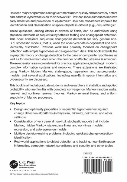 These questions, among others in dozens of fields, can be addressed using statistical methods of sequential hypothesis testing and changepoint detection. This book considers sequential changepoint detection for very general non-i.i.d. stochastic models, that is, when the observed data is dependent and non-identically distributed. Previous work has primarily focused on changepoint detection with simple hypotheses and single-stream data. This book extends the asymptotic theory of change detection to the case of composite hypotheses as well as for multi-stream data when the number of affected streams is unknown. These extensions are more relevant for practical applications, including in modern, complex information systems and networks. These extensions are illustrated using Markov, hidden Markov, state-space, regression, and autoregression models, and several applications, including near-Earth space informatics and cybersecurity are discussed.