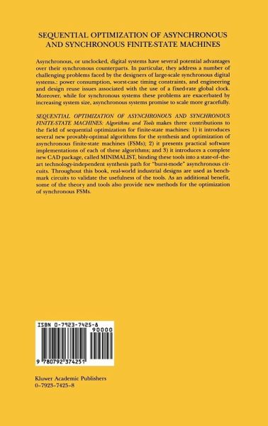 Sequential Optimization of Asynchronous and Synchronous Finite-State Machines: Algorithms and Tools makes three contributions to the field of sequential optimization for finite-state machines: 1) it introduces several new provably-optimal algorithms for the synthesis and optimization of asynchronous finite-state machines (FSMs); 2) it presents practical software implementations of each of these algorithms; and 3) it introduces a complete new CAD package, called MINIMALIST, binding these tools into a state-of-the-art technology-independent synthesis path for `burst-mode' asynchronous circuits. Throughout this book, real-world industrial designs are used as benchmark circuits to validate the usefulness of the tools. As an additional benefit, some of the theory and tools also provide new methods for the optimization of synchronous FSMs.