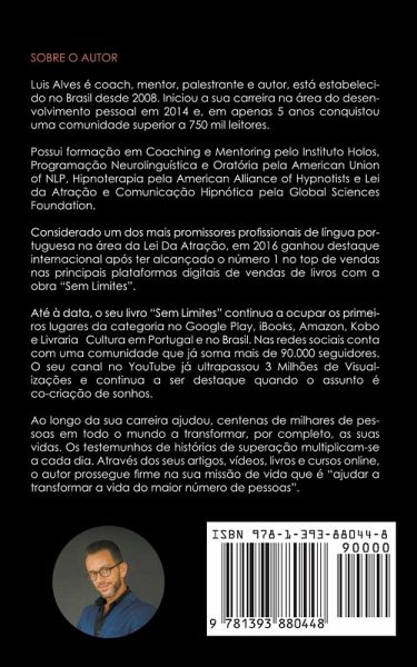 PORTUGUÊS: Luis Alves é Coach, Mentor, Palestrante e Autor. É especialista em Sucesso e Lei da Atração. Possui 11 livros publicados dos quais se destaca o best-seller internacional "Sem Limites - O Guia Para Atrair Riqueza, Prosperidade e Abundância" que ocupa frequentemente o número 1 de vendas da sua categoria no Google Play, iTunes e Amazon. Na lista dos seus livros mais vendidos destacam-se também as obras: "A Matriz Do Sucesso", "Pense Positivo", "Inspiração Para A Vida", "Como Melhorar A Sua Comunicação" e "Ser Feliz É Possível". A sua obra mais recente é o livro "Os Segredos De Um Casamento De Sucesso". É formado em Coaching e Mentoring pelo Instituto Holos, Programação Neurolinguística e Oratória pela American Union of NLP, Hipnoterapia pela American Alliance of Hypnotists e Lei da Atração e Comunicação Hipnótica pela Global Sciences Foundation. Considerado um dos mais promissores profissionais na área do desenvolvimento humano em língua portuguesa, o Autor conta com uma comunidade de mais de 500.000 leitores em todo o mundo. ENGLISH: Luis Alves is a Coach, Mentor, Speaker and Author. Expert in Success and in the Law of Attraction. He has 12 books published including the international best-seller "Sem Limites – O Guia Para Atrair Riqueza, Prosperidade e Abundância" which often ranks number 1 in sales in its category in Google Play, iTunes and Amazon. Graduated in Coaching and Mentoring by the Holos Institute, Neuro-Linguistic Programming and Public Speaking by the American Union of NLP, Hypnotherapy by the American Alliance of Hypnotists and Law of Attraction and Hypnotic Communication by the Global Sciences Foundation. Considered one of the most promising professionals in the area of personal development in Portuguese language, the author has a community with over 500,000 readers worldwide.