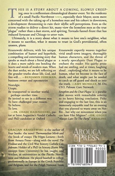 This is a story about a coming, slowly creeping, once in a millennium climatological disaster event. Yet the residents of a small Pacific Northwest town, especially their Mayor, seem more concerned with the taking up of a homeless man and his cohort in downtown, a development threatening to ruin their idyllic self-perceptions. Even as the storm readies to deliver a direct hit, many view the homeless men as the true "plague" rather than a dust storm, acid spitting, Tornado funnel-front that has reduced Syracuse and Chicago to utter ruin. Ultimately, it is a story about what it means to love one's neighbor, what it means to sacrifice, what it means to trust in God's providential, often unseen, plans.