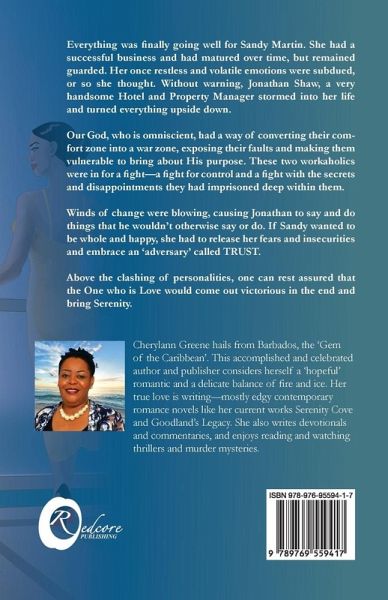 Everything was finally going well for Sandy Martin. She had a successful business and had matured over time, but remained guarded. Her once restless and volatile emotions were subdued,or so she thought. Without warning, Jonathan Shaw, a very handsome Hotel and Property Manager stormed into her life and turned everything upside down. Our God, who is omniscient, had a way of converting their comfort zone into a war zone, exposing their faults and making them vulnerable to bring about His purpose. These two workaholics were in for a fight-a fight for control and a fight with the secrets and disappointments they had imprisoned deep within them. Winds of change were blowing, causing Jonathan to say and do things that he wouldn't otherwise say or do. If Sandy wanted to be whole and happy, she had to release her fears and insecurities and embrace an 'adversary' called TRUST. Above the clashing of personalities, one can rest assured that the One who is Love would come out victorious in the end and bring Serenity.
