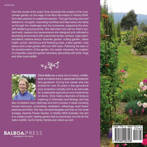 Over the course of ten years Chris chronicles the creation of her cool-climate garden on the edge of the Blue Mountains in Hartley NSW, from bare paddock to established garden. Through flooding rains and hailstorms, droughts, impending bushfires and heat waves she takes us through the challenges and the successes, peppering the story with detailed growing advice. She describes how with an artist's eye, hard work, passion and perseverance she designed and cultivated a flourishing environment with a perennial border, orchard, vegie patch, woodland, wisteria arbour, lavender garden, cutting garden, native heath, ponds, deciduous and flowering trees, a fairy garden, rose arbour and a rose garden with over 450 roses. Following the story of the transformation of the garden, the reader witnesses the creation of a beautiful, peaceful garden sanctuary abounding with birds, frogs and other local wildlife.
