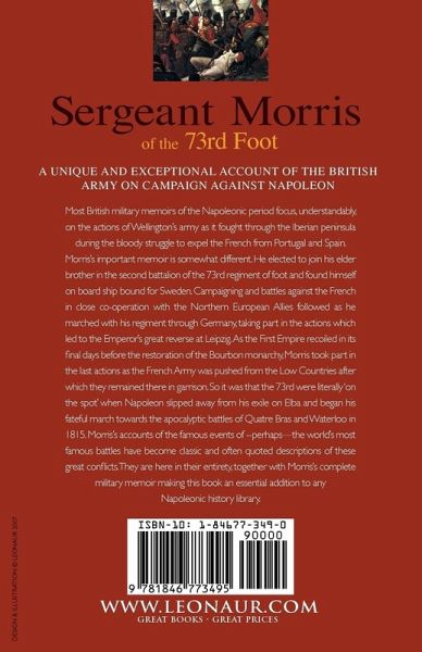 A unique and exceptional account of the British Army on campaign against Napoleon Most British military memoirs of the Napoleonic period focus, understandably, on the actions of Wellington's army as it fought through the Iberian peninsula during the bloody struggle to expel the French from Portugal and Spain. Morris's important memoir is somewhat different. He elected to join his elder brother in the second battalion of the 73rd regiment of foot and found himself on board ship bound for Sweden. Campaigning and battles against the French in close co-operation with the Northern European Allies followed as he marched with his regiment through Germany, taking part in the actions which led to the Emperor's great reverse at Leipzig. As the First Empire recoiled in its final days before the restoration of the Bourbon monarchy, Morris took part in the last actions as the French Army was pushed from the Low Countries after which they remained there in garrison. So it was that the 73rd were literally 'on the spot' when Napoleon slipped away from his exile on Elba and began his fateful march towards the apocalyptic battles of Quatre Bras and Waterloo in 1815. Morris's accounts of the famous events of --perhaps-the world's most famous battles have become classic and often quoted descriptions of these great conflicts. They are here in their entirety, together with Morris's complete military memoir making this book an essential addition to any Napoleonic history library.