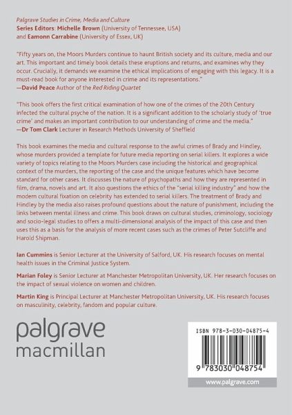 This book examines the media and cultural responses to the awful crimes of Brady and Hindley, whose murders provided a template for future media reporting on serial killers. It explores a wide variety of topics relating to the Moors Murders case including: the historical and geographical context of the murders, the reporting of the case and the unique features which have become standard for other murder cases e.g. nicknames for the serial killers, and it discusses the nature of evil and psychopaths and how they are represented in film, drama, novels and art. It also questions the ethics of the "serial killing industry" and how the modern cultural fixation on celebrity has extended to serial killers, and it explores the impact on the journalists and police officers from being involved in such cases including some interviews with them. The treatment of Brady and Hindley by the media also raises profound questions about the nature of punishment including the links between mentalillness and crime and whether there is ever the prospect of redemption. This book draws on cultural studies, criminology, sociology and socio-legal studies to offers a multi-dimensional analysis of the impact of this case and then uses this as a basis for the analysis of more recent cases such as the crimes of Peter Sutcliffe and Harold Shipman.