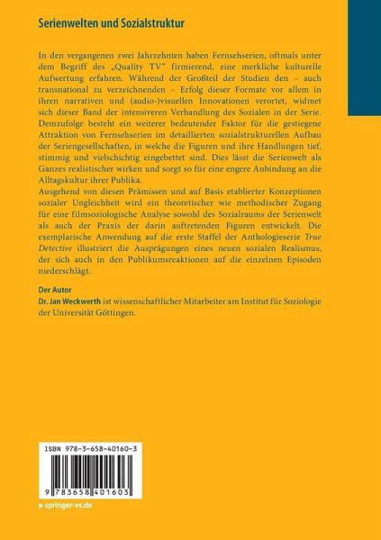 In den vergangenen zwei Jahrzehnten haben Fernsehserien, oftmals unter dem Begriff des "Quality TV" firmierend, eine merkliche kulturelle Aufwertung erfahren. Während der Großteil der Studien den - auch transnational zu verzeichnenden - Erfolg dieser Formate vor allem in ihren narrativen und (audio-)visuellen Innovationen verortet, widmet sich dieser Band der intensiveren Verhandlung des Sozialen in der Serie. Demzufolge besteht ein weiterer bedeutender Faktor für die gestiegene Attraktion von Fernsehserien im detaillierten sozialstrukturellen Aufbau der Seriengesellschaften, in welche die Figuren und ihre Handlungen tief, stimmig und vielschichtig eingebettet sind. Dies lässt die Serienwelt als Ganzes realistischer wirken und sorgt so für eine engere Anbindung an die Alltagskultur ihrer Publika.
