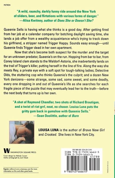 In a gritty thriller from the acclaimed author whom William Vollmann called "a real storyteller," a street-smart young woman takes what looks like an easy job and ends up having to solve a murder case--before the next body that turns up is her own. Queenie Sells is having what she thinks is a good day. After getting fired from her job at a calendar company for botching Daylight savings, she is informally hired by a wealthy acquaintance to track down his girlfriend, a stripper named Trigger Happy. But Queenie's seemingly good luck turns hard when she finds Trigger dead in her apartment. Now Queenie's daily routine of being a drunk smartass is put on hold as she becomes both a suspect for the murder and the target for an unknown predator. Hopping from bar to bar, from Coney Island clam stands to the Waldorf Astoria, she inadvertently lands on the trail of Trigger's killer and puts herself in the line of fire.