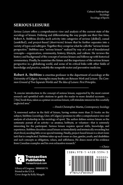 Serious Leisure offers a comprehensive view and analysis of the current state of the sociology of leisure. Defining and differentiating the way people use their free time, Robert A. Stebbins divides such activity into categories of serious (skilled), casual (unskilled), and project-based (short-term) leisure that he further separates into a variety of types and subtypes. Together they comprise what he calls the "serious leisure perspective." Stebbins sets out the basic concepts that make up the three leisure forms, focusing on their essential elements. Stebbins sees "serious leisure" realized by way of a set of foundational concepts-organization, community, history, lifestyle, and culture. He reviews the history and background of the concept of serious leisure and follows up with historical commentary. Finally, he examines the future and the importance of the serious leisure perspective in a globalizing world, and some of its critical links with other fields of knowledge and practice, notably the nonprofit sector and preventive medicine. Serious Leisure is a coherent and comprehensive resource setting out the main parameters of what is now widely recognized as an interdisciplinary research area. It will be of interest to sociologists, labor studies specialists, and economists.