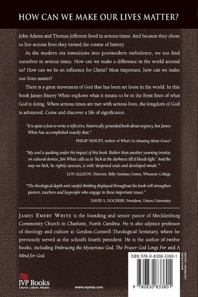 A 2005 Evangelical Christian Publishing Association Gold Medallion finalist. How can we make our lives matter? John Adams and Thomas Jefferson lived in serious times. And, because they chose to live serious lives, they turned the course of history. As the modern era transitions into postmodern turbulence, we, too, find ourselves in serious times. How can we make a difference in the world around us? How can we be an influence for Christ? Most important, how can we make our lives matter? There is a a great movement of God set loose in the world. In this book, James Emery White explores what it means to be at the front lines of what God is doing. When serious times are met with serious lives, the kingdom of God is advanced. Come and discover a life of significance.