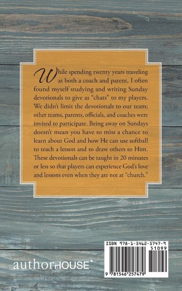 While spending twenty years traveling as both a coach and parent, I often found myself studying and writing Sunday devotionals to give as "chats" to my players. We didn't limit the devotionals to our team; other teams, parents, officials, and coaches were invited to participate. Being away on Sundays doesn't mean you have to miss a chance to learn about God and how He can use softball to teach a lesson and to draw others to Him. These devotionals can be taught in 20 minutes or less so that players can experience God's love and lessons even when they are not at "church."