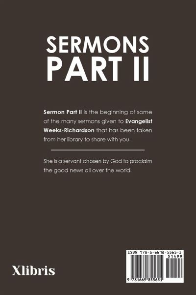 Sermon Part II is the beginning of some of the many sermons given to Evangelist Weeks that Richardson has taken from her library to share with you.
