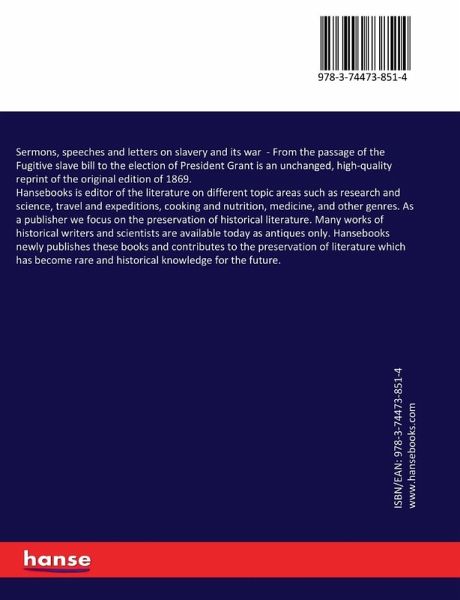 Sermons, speeches and letters on slavery and its war - From the passage of the Fugitive slave bill to the election of President Grant is an unchanged, high-quality reprint of the original edition of 1869.