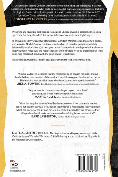 Preaching and music are both regular elements of Christian worship, yet they often don't interact or inform each other in meaningful ways. Theologian, pastor, and musician Noel A. Snyder considers how preaching that seeks to engage hearts and minds might be helpfully informed by musical theory-so that preachers might craft sermons that sing.