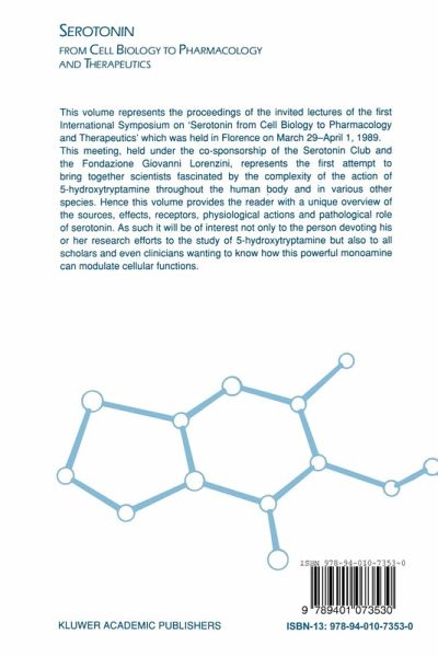 This volume represents the proceedings ofthe invited lectures ofthe first International Symposium on "Serotonin from Cell Biology to Pharmacology and Therapeutics" which was held in Florence on March 29 -Aprill, 1989. This meeting, held under the co-sponsorship of the Serotonin Club and the Fondazione Giovanni Lorenzini, represents the first attempt to bring together scientists fascinated by the complexity of the action of 5-hydroxytryptamine throughout the body and in various species. Hence this volume provides the reader with the unique overview of the sources, effects, receptors, physiological actions and pathological role of Serotonin. As such it will be of interest not only to the person devoting herorhis research efforts to the study of 5-hydroxytryptamine but also to all scholars and even clinicians wanting to know how the powerful monoamine can modulate cellular functions. To accelerate the publication of these proceedings the Editors and the publishers have selected the camera ready format and have avoided a lengthy refereeing process. Hence the scientific content of, and the opinions expressed in the chapters are the sole responsibility of the authors. The Editors Milan and Houston The Editors want to thank Mrs. H. Liepman and her staff at Kluwer for the prompt and efficient handling of the manuscripts.