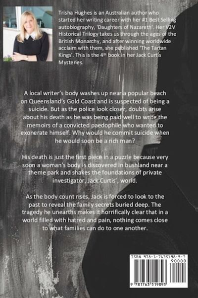 A local writer's body washes up near a popular beach on Queensland's Gold Coast and is suspected of being a suicide. But as the police look closer, doubts arise about his death as he was being paid well to write the memoirs of a convicted paedophile who wanted to exonerate himself. Why would he commit suicide when he would soon be a rich man? His death is just the first piece in a puzzle because very soon a woman's body is discovered in bushland near a theme park and shakes the foundations of private investigator, Jack Curtis', world. As the body count rises, Jack is forced to look to the past to reveal secrets buried deep. The tragedy he unearths makes it horrifically clear that in a world filled with hatred and pain, nothing comes close to what families can do to one another.