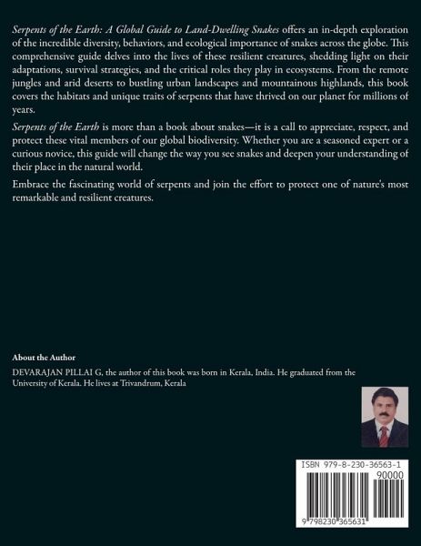 Serpents of the Earth: A Global Guide to Land-Dwelling Snakes offers an in-depth exploration of the incredible diversity, behaviors, and ecological importance of snakes across the globe. This comprehensive guide delves into the lives of these resilient creatures, shedding light on their adaptations, survival strategies, and the critical roles they play in ecosystems. From the remote jungles and arid deserts to bustling urban landscapes and mountainous highlands, this book covers the habitats and unique traits of serpents that have thrived on our planet for millions of years. Serpents of the Earth is more than a book about snakes-it is a call to appreciate, respect, and protect these vital members of our global biodiversity. Whether you are a seasoned expert or a curious novice, this guide will change the way you see snakes and deepen your understanding of their place in the natural world. Embrace the fascinating world of serpents and join the effort to protect one of nature's most remarkable and resilient creatures.