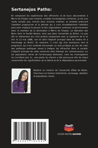 En comparant les expériences des affranchis et de leurs descendants à Morro do Chapéu avec d'autres sociétés esclavagistes similaires, je me suis rendu compte que, comme dans d'autres endroits, le contexte entourant l'abolition progressive et la période qui a suivi immédiatement l'abolition peut avoir impliqué le pouvoir et des négociations continues et permanentes dans le maintien de la domination à Morro do Chapéu. La libération des Noirs dans le Sertão Baiano, ainsi que dans l'ensemble du Brésil, n'a pas été un événement qui s'est produit uniquement avec la signature de la loi d'or le 13 mai 1888, une loi dont l'objectif principal était de mettre fin à l'esclavage au Brésil. Au contraire, il s'est agi d'un processus lent et progressif, qui s'est contenté d'accomplir un acte juridique au lieu de créer des politiques publiques visant à intégrer les affranchis dans la société. L'objectif principal de cette recherche était d'élargir les connaissances sur les populations noires de l'arrière-pays bahianais, mais les investigations ne s'arrêtent pas là ; une partie du chemin a été parcourue afin de mieux comprendre les significations de la liberté et de la dépendance personnelle.