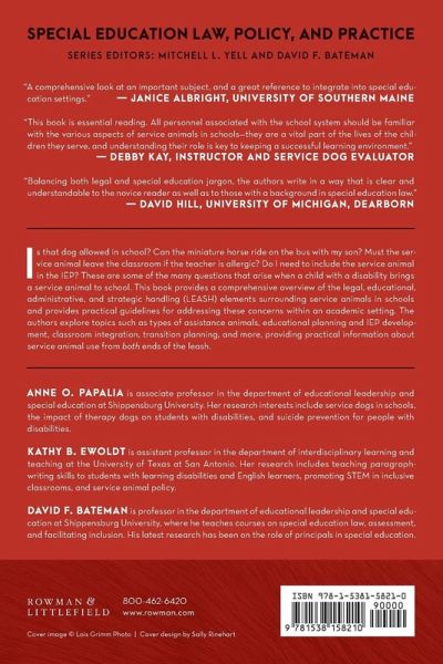 Provides practical guidance for educators, rehabilitation counselors, school counselors and nurses, parent advocates, and other professionals and stakeholders in creating legal and welcoming policies, procedures, and practices for service and emotional support animals in schools and related settings.