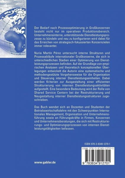 Nuria Martín Pérez untersucht interne Strukturen und Prozessabläufe internationaler Großkonzerne, die sich in unterschiedlichen Stadien einer Optimierung von Dienstleistungsprozessen befinden. Auf der Grundlage von empirischen Analysen und theoretisch konzeptionellen Überlegungen entwickelt die Autorin eine systematische und methodengestützte Vorgehensweise für die Organisation und Steuerung interner Dienstleistungseinheiten. Dabei werden Kriterien zur Ausgestaltung einer effizienten Strukturierung von internen Dienstleistungsaktivitäten aufgestellt. Eine besondere Bedeutung wird der Rolle von Shared Service Centern bei der Restrukturierung und Neugestaltung interner Dienstleistungsstrukturen zugeschrieben.