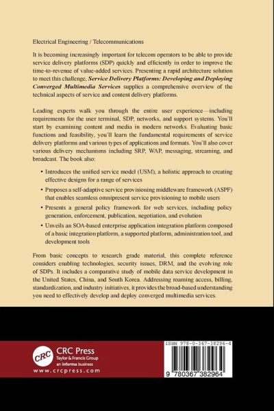 This book presents a rapid architecture solution that will enable readers to provide service delivery platforms (SDP) capable of improving the time-to-revenue of value-added services. Supplying a comprehensive overview of the technical aspects of service and content delivery platforms, the text walks readers through the entire user experience. It examines content and media in modern networks, evaluates basic functions and feasibility, and covers the fundamental requirements of service delivery platforms in various applications, formats, and delivery mechanisms.