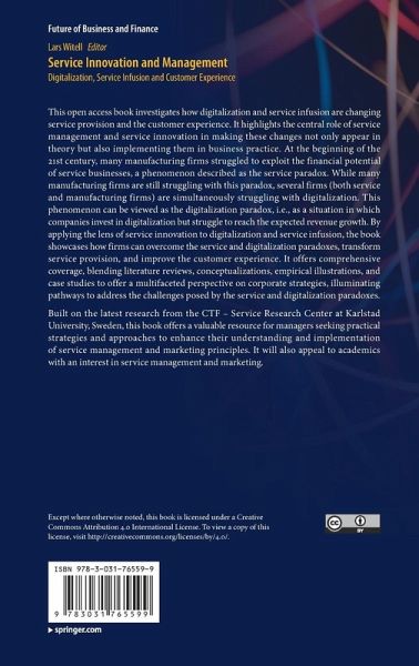 This open access book investigates how digitalization and service infusion are changing service provision and the customer experience. It highlights the central role of service management and service innovation in making these changes not only appear in theory but also implementing them in business practice. At the beginning of the 21st century, many manufacturing firms struggled to exploit the financial potential of service businesses, a phenomenon described as the service paradox. While many manufacturing firms are still struggling with this paradox, several firms (both service and manufacturing firms) are simultaneously struggling with digitalization. This phenomenon can be viewed as the digitalization paradox, i.e., as a situation in which companies invest in digitalization but struggle to reach the expected revenue growth. By applying the lens of service innovation to digitalization and service infusion, the book showcases how firms can overcome the service and digitalization paradoxes, transform service provision, and improve the customer experience. It offers comprehensive coverage, blending literature reviews, conceptualizations, empirical illustrations, and case studies to offer a multifaceted perspective on corporate strategies, illuminating pathways to address the challenges posed by the service and digitalization paradoxes.