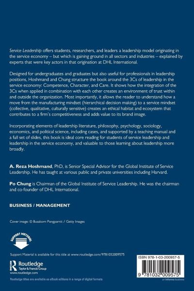 Service Leadership offers students, researchers, and leaders a leadership model originating in the service economy - but which is gaining ground in all sectors and industries - explained by experts that were key actors in that origination at DHL International. Designed for undergraduates and graduates but also useful for professionals in leadership positions, Hoshmand and Chung structure the book around the 3Cs of leadership in the service economy: Competence, Character, and Care. It shows how the integration of the 3Cs when applied in combination with each other creates an environment of trust within and outside the organization. Most importantly, it allows the reader to understand how a move from the manufacturing mindset (hierarchical decision making) to a service mindset (collective, qualitative, culturally sensitive) creates an ethical habitat and ecosystem that contributes to a firm's competitiveness and adds value to its brand image. Incorporating elements of leadership literature, philosophy, psychology, sociology, economics, and political science, including cases, and supported by a teaching manual and a full set of slides, this book is ideal core reading for students of service leadership and leadership in the service economy, and valuable to those learning about leadership more broadly.