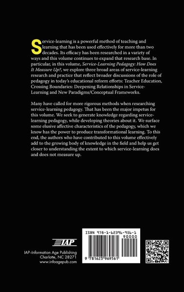 A volume in Advances in Service-Learning Research Series Editor Virginia M. Jagla, National Louis University; Service-learning is a powerful method of teaching and learning that has been used effectively for more than two decades. Its efficacy has been researched in a variety of ways and this volume continues to expand that research base. In particular, in this volume, Service-Learning Pedagogy: How Does It Measure Up?, we explore three broad areas of service-learning research and practice that reflect broader discussions of the role of pedagogy in today's educational reform efforts: Teacher Education, Crossing Boundaries: Deepening Relationships in Service-Learning and New Paradigms/ Conceptual Frameworks. Many have called for more rigorous methods when researching service-learning pedagogy. That has been the major impetus for this volume. We seek to generate knowledge regarding service-learning pedagogy, while developing theories about it. We surface some elusive affective characteristics of the pedagogy, which we know has the power to produce transformational learning. To this end, the authors who have contributed to this volume effectively add to the growing body of knowledge in the field and help us get closer to understanding the extent to which service-learning does and does not measure up.
