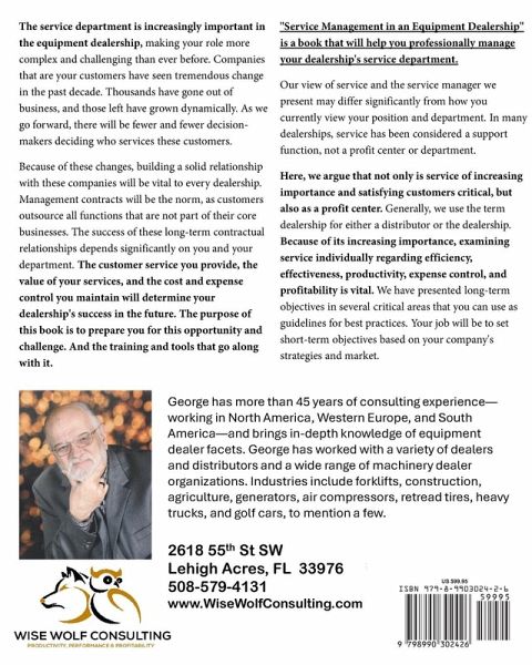 The service department is increasingly important in the equipment dealership, making your role more complex and challenging than ever before. Companies that are your customers have seen tremendous change in the past decade. Thousands have gone out of business, and those left have grown dynamically. As we go forward, there will be fewer and fewer decision-makers deciding who services these customers. Because of these changes, building a solid relationship with these companies will be vital to every dealership. Management contracts will be the norm, as customers outsource all functions that are not part of their core businesses. The success of these long-term contractual relationships depends significantly on you and your department. The customer service you provide, the value of your services, and the cost and expense control you maintain will determine your dealership's success in the future.The purpose of this book is to prepare you for this opportunity and challenge. And the training and tools that go along with it. "Service Management in an Equipment Dealership" is a book that will help you professionally manage your dealership's service department. Our view of service and the service manager we present may differ significantly from how you currently view your position and department. In many dealerships, service has been considered a support function, not a profit center or department. Here, we argue that not only is service of increasing importance and satisfying customers critical, but also as a profit center. Generally, we use the term dealership for either a distributor or the dealership. Because of its increasing importance, examining service individually regarding efficiency, effectiveness, productivity, expense control, and profitability is vital. We have presented long-term objectives in several critical areas that you can use as guidelines for best practices. Your job will be to set short-term objectives based on your company's strategies and market.