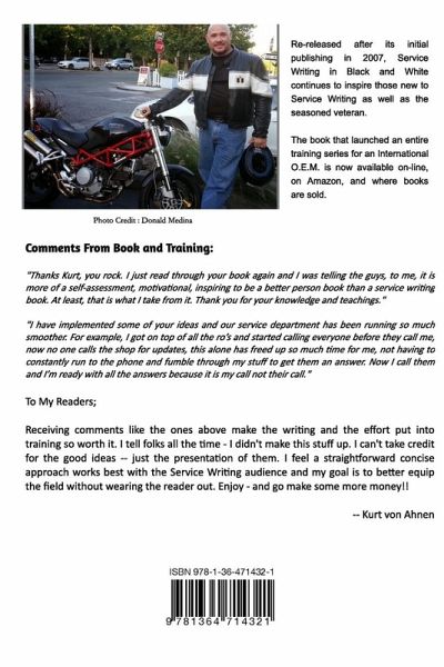 Re-released after its initial publishing in 2007, Service Writing in Black and White continues to inspire those new to Service Writing as well as the seasoned veteran. The book that launched an entire training series for an International O.E.M. is now available on-line, on Amazon, and where books are sold.