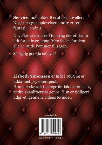 "Service" indeholder 8 erotiske noveller. Nogle af novellerne er egne oplevelser, andre er ren fantasi ... endnu. Novellerne varierer i tema, og der er derfor lidt for enhver smag. Men fælles for dem alle er, at de kommer til sagen. Så rigtig god (læse) lyst!