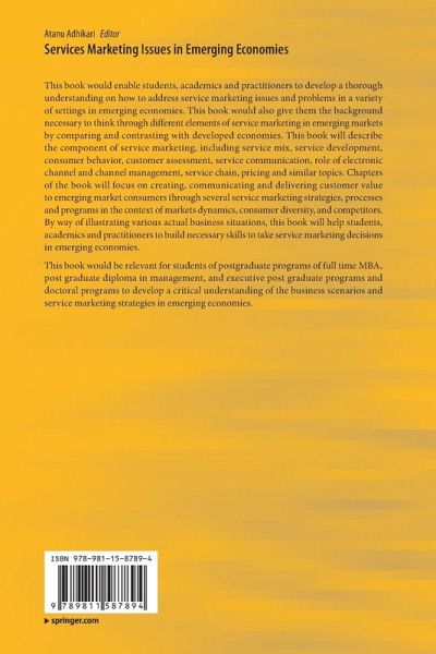 This book would be relevant for students of postgraduate programs of full time MBA, post graduate diploma in management, and executive post graduate programs and doctoral programs to develop a critical understanding of the business scenarios and service marketing strategies in emerging economies.