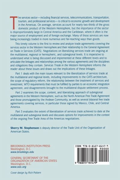 " A Brookings Institution Press and the Organization of American States publication The services sector-including financial services, telecommunications, transportation, tourism, and professional services-has become critical to the continued economic dynamism in the Americas. And the quality and competitiveness of this sector are essential to economic growth and development. On average, services-increasingly traded in more numerous and far-reaching ways than goods-account for nearly two-thirds of the gross domestic product of the Western Hemisphere. The importance of the sector, however, is disproportionately large in Central America and the Caribbean, where it often is the major source of employment and of foreign exchange.This timely volume is the first to review and analyze trade agreements covering the services sector in the Western Hemisphere and their relationship to the General Agreement on Trade in Services (GATS), in force since 1995 as an integral part of the World Trade Organization (WTO). Negotiations on liberalizing services trade are continuing at the multilateral, the regional or hemispheric, and the subregional levels. It is imperative to understand what is being discussed and implemented at these different levels and to articulate the linkages and relationships among the various agreements and the disciplines and obligations they contain. Services Trade in the Western Hemisphere informs the reader about these issues and more. Part 1 deals with the main issues relevant to the liberalization of services trade at the multilateral and regional levels, including improvements to the GATS architecture, the scope of regulatory reform, the relationship between the treatment of services and investment, WTO requirements that must be fulfilled by parties to an economic integration agreement, and disagreements brought to the multilateral dispute settlement process. Part 2 examines the scope, content, and liberalizing approach of subregional agreements in the Western Hemisphere, such as the North American Free Trade Agreement and those p "