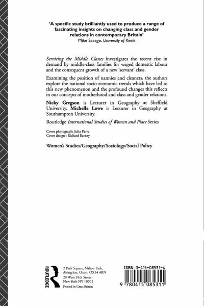 Servicing the Middle Classes investigates the recent rise in demand by middle class families for waged domestic labour and the consequent growth of a new `servant' class. Examining the position of nannies and cleaners, the authors explore the national socio-economic trends which have led to this new phenomenon and the profound changes this reflects in our concepts of motherhood and class and gender relations.