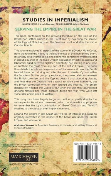 Explores the role of both mules and mule drivers to the British war effort and in particular the social and economic aspects of the Cypriot contribution to the Great War. It also questions why Cypriots forgot this extraordinary contribution.