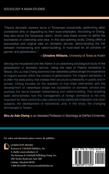 Serving the Household and the Nation is an absorbing sociological study of the globalization of domestic service. Using the case of Filipina domestics in Taiwan, Cheng examines how nationalist politics shape the experience of migrant women under the context of globalization.