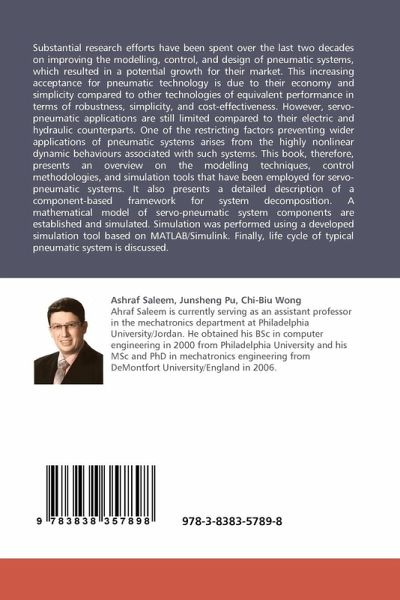 Substantial research efforts have been spent over the last two decades on improving the modelling, control, and design of pneumatic systems, which resulted in a potential growth for their market. This increasing acceptance for pneumatic technology is due to their economy and simplicity compared to other technologies of equivalent performance in terms of robustness, simplicity, and cost-effectiveness. However, servo-pneumatic applications are still limited compared to their electric and hydraulic counterparts. One of the restricting factors preventing wider applications of pneumatic systems arises from the highly nonlinear dynamic behaviours associated with such systems. This book, therefore, presents an overview on the modelling techniques, control methodologies, and simulation tools that have been employed for servo-pneumatic systems. It also presents a detailed description of a component-based framework for system decomposition. A mathematical model of servo-pneumatic system components are established and simulated. Simulation was performed using a developed simulation tool based on MATLAB/Simulink. Finally, life cycle of typical pneumatic system is discussed.
