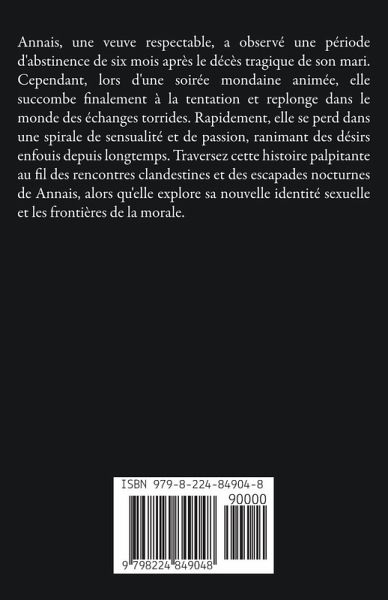 Annais, une veuve respectable, a observé une période d'abstinence de six mois après le décès tragique de son mari. Cependant, lors d'une soirée mondaine animée, elle succombe finalement à la tentation et replonge dans le monde des échanges torrides. Rapidement, elle se perd dans une spirale de sensualité et de passion, ranimant des désirs enfouis depuis longtemps. Traversez cette histoire palpitante au fil des rencontres clandestines et des escapades nocturnes de Annais, alors qu'elle explore sa nouvelle identité sexuelle et les frontières de la morale.