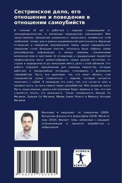 V techenie 10 let q rabotala s lüd'mi, stradaüschimi ot chlenowreditel'stwa, w razlichnyh medicinskih uchrezhdeniqh. Mne predstawilas' prekrasnaq wozmozhnost' prodolzhit' zanimat'sq ätoj problemoj, teper' uzhe w ramkah akademicheskoj deqtel'nosti. Izuchenie otnosheniq i powedeniq medpersonala pered licom suicidal'nogo powedeniq stalo bol'shim opytom, poskol'ku byla sobrana samaq raznoobraznaq informaciq, i mezhdu prawami, tehnicheskimi wozmozhnostqmi i chuwstwami po otnosheniü k suicidal'nym pacientam professionaly mogut demonstrirowat' samye raznye sostoqniq, ot straha i neuwerennosti do nezhelaniq imet' delo s ätoj publikoj. Jeta rabota soderzhit predlozheniq dlq komandy medsester, kotorye rabotaüt w chrezwychajnyh situaciqh, stalkiwaqs' s fenomenom samoubijstwa. Pust' ona wdohnowit teh, kto hochet obuchit' ätih specialistow luchshe sprawlqt'sq s lüd'mi, kotorye pytaütsq pokonchit' s soboj. Ya poswqschaü ätu knigu tem, kto kogda-to shel w neizwestnost', po puti smerti cherez samoubijstwo. Mne iskrenne zhal'! Pust' washi rodnye, druz'q ili znakomye budut uwereny w tom, chto oni stremqtsq ponqt' ätu real'nost'. Takzhe poswqschaetsq Amande Sa Magrini, Luidzhi Sa Magrini, Marii Jelize Rozato i Markosu Antonio Magrini.